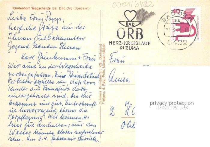 72798704 alte Postkarte Wegscheide Bad Orb Kinderdorf Fliegeraufnahme postalisch gelaufen Erhaltung siehe scans [FriedD77] KatCode: 11110006435001