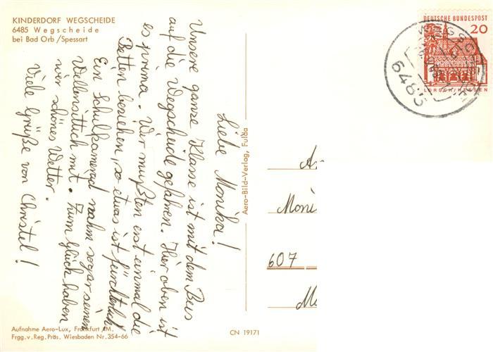 73877482 alte Postkarte Wegscheide Bad Orb Kinderdorf Fliegeraufnahme postalisch gelaufen Erhaltung siehe scans [WerneD78] KatCode: 11110006435001