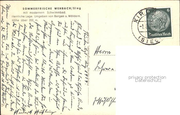 32185878 alte Postkarte Wehbach Schwimmbad postalisch gelaufen Erhaltung siehe scans KatCode: 11110007132063