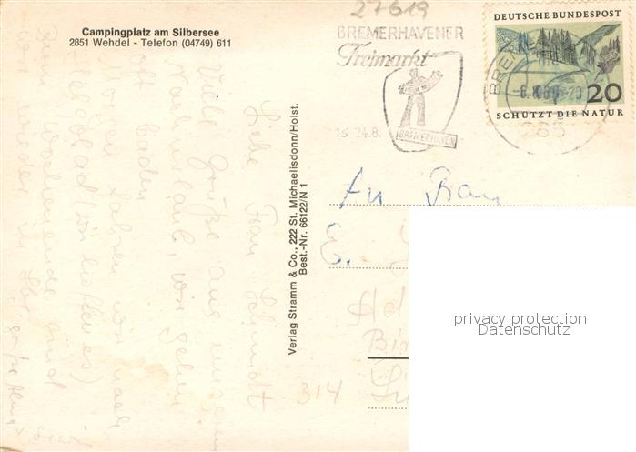 73761951 alte Postkarte Wehdel Wesermuende Campingplatz am Silbersee Details postalisch gelaufen Erhaltung siehe scans [FriedD77] KatCode: 11110003352050
