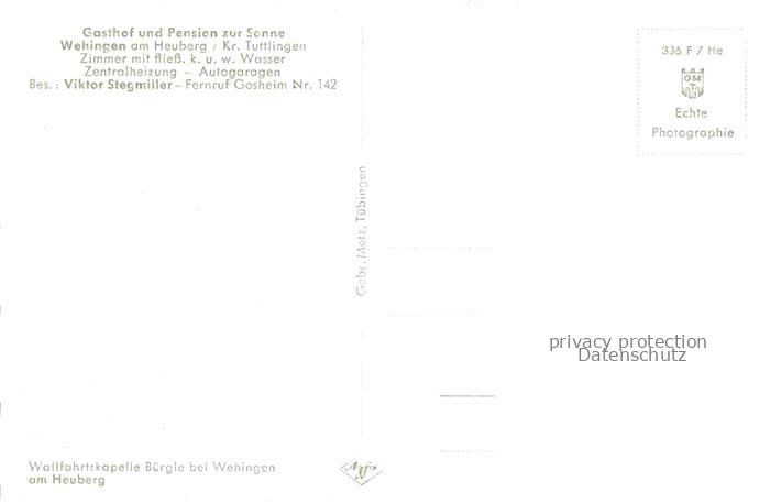74043335 Wehingen Wuerttemberg Wallfahrtskapelle Buergle postalisch nicht gelaufen Erhaltung siehe scans [FriedD77] KatCode: 11110008327051