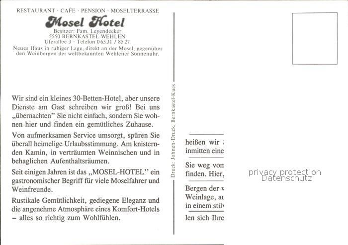 72233330 Wehlen Mosel Hotel Mosel postalisch nicht gelaufen Werbekarte (keine Postkarte) Erhaltung siehe scans KatCode: 11110007231008