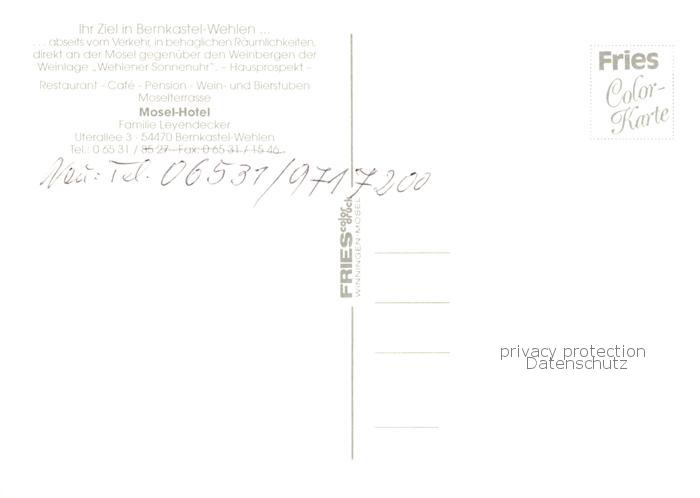 73858142 Wehlen Mosel Mosel Hotel Leyendecker Gaststube Panorama Terrasse postalisch nicht gelaufen Erhaltung siehe scans [WerneD78] KatCode: 11110007231008