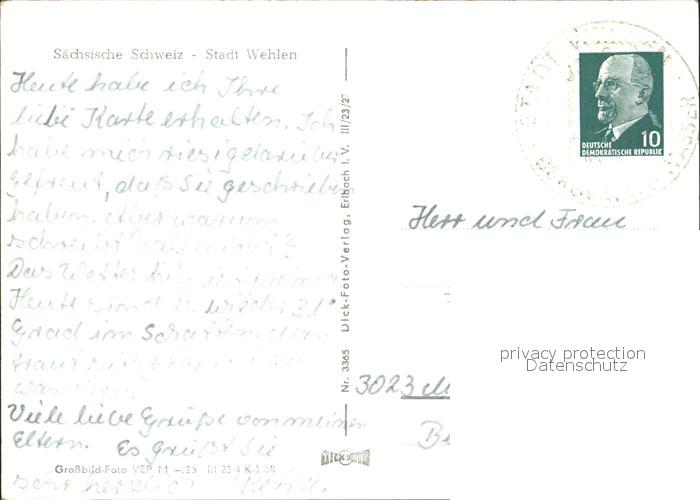 72032056 alte Postkarte Wehlen Sachsen postalisch gelaufen Erhaltung siehe scans KatCode: 11110014287380