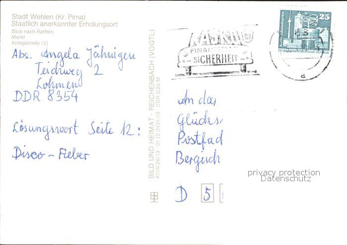 72461680 alte Postkarte Wehlen Sachsen Blick nach Rathen Markt Anlegestelle postalisch gelaufen Erhaltung siehe scans KatCode: 11110014287380