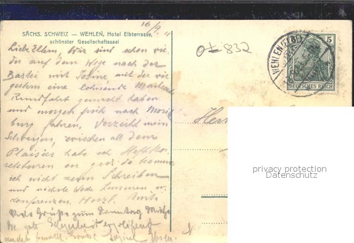 42156151 alte Postkarte Wehlen Sachsen Hotel Elbterrasse postalisch gelaufen Erhaltung siehe scans KatCode: 11110014287380