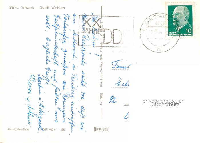 72641263 alte Postkarte Wehlen Sachsen Ortsansicht mit Kirche Elbtal Elbsandsteingebirge postalisch gelaufen Erhaltung siehe scans [FriedD77] KatCode: 11110014287380