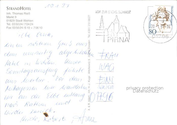 72368866 alte Postkarte Wehlen Sachsen Strand Hotel Gastraum Zimmer Ausflugsschiffe postalisch gelaufen Erhaltung siehe scans KatCode: 11110014287380