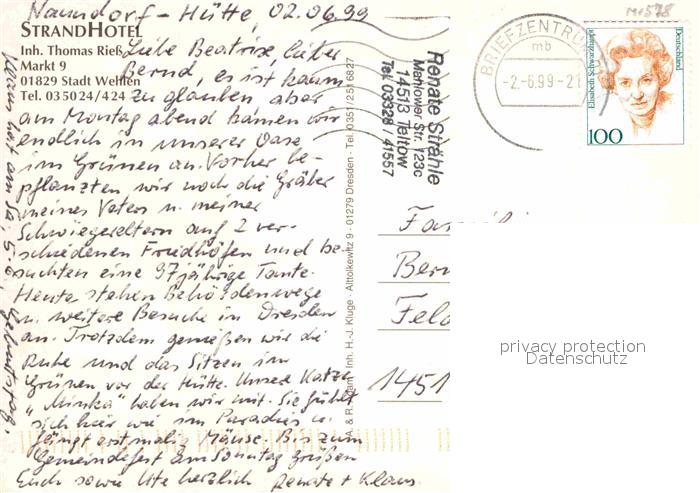 72680050 alte Postkarte Wehlen Sachsen Strandhotel Drehort ZDF-Serie Elbflorenz Elbpartie postalisch gelaufen Erhaltung siehe scans [LiesaD40] KatCode: 11110014287380