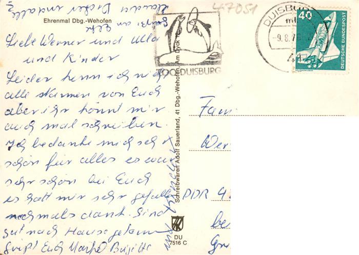 73884465 alte Postkarte Wehofen Ehrenmal postalisch gelaufen Erhaltung siehe scans [WerneD78] KatCode: 11110005112000