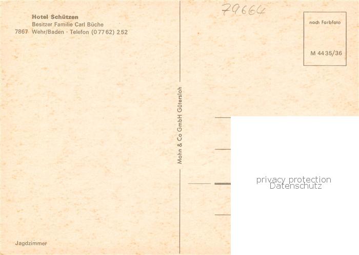 73867121 Wehr Baden Hotel Schuetzen Restaurant postalisch nicht gelaufen Erhaltung siehe scans [FriedD77] KatCode: 11110008337116
