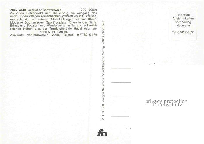 74156041 Wehr Baden Schwarzwald BW Ruine Baerenfels Panorama Hirschsprung im Wehratal Hauptstrasse St. Martins-Kirche Staubecken postalisch nicht gelaufen Erhaltung siehe scans [FriedD77] KatCode: 11110008337116