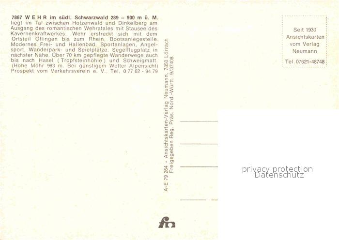 72833839 Wehr Baden Suedlicher Schwarzwald Fliegeraufnahme postalisch nicht gelaufen Erhaltung siehe scans [FriedD77] KatCode: 11110008337116