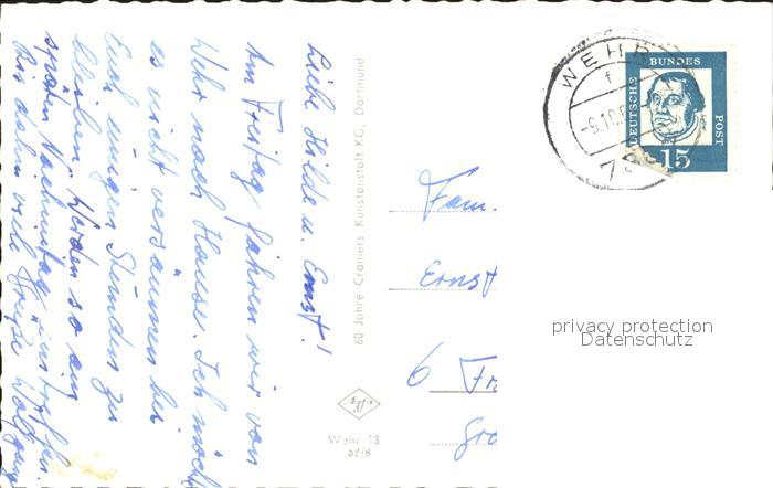 72097183 alte Postkarte Wehr Hirschsprung Kirche Kerner Garten Wehratal Bruecke Totalansicht postalisch gelaufen Erhaltung siehe scans KatCode: 11110008337116