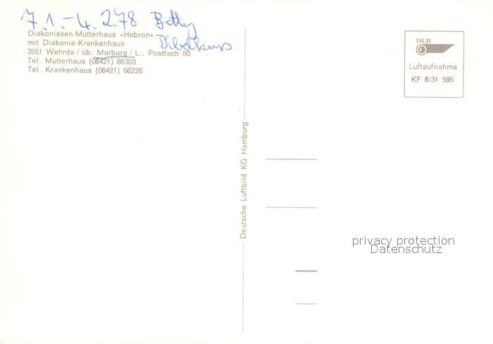 73008376 Wehrda Marburg Lahn Diakonissen Mutterhaus Hebron Krankenhaus Fliegeraufnahme postalisch nicht gelaufen Erhaltung siehe scans [WerneD78] KatCode: 11110006534014