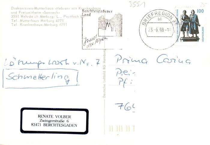 73935032 alte Postkarte Wehrda Marburg Lahn Diakonissen Mutterhaus Hebron mit Krankenhaus und Freizeitheim Sonneck postalisch gelaufen Erhaltung siehe scans [FriedD77] KatCode: 11110006534014