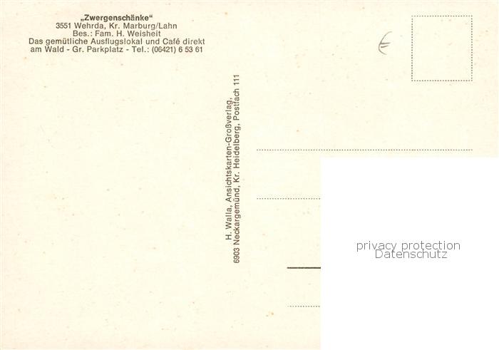 73862893 Wehrda Marburg Lahn Zwergenschaenke Gastraeume postalisch nicht gelaufen Erhaltung siehe scans [WerneD78] KatCode: 11110006534014