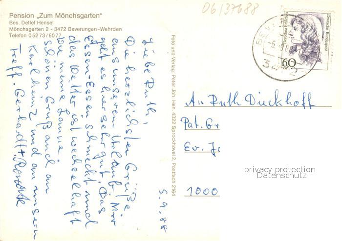 73651908 alte Postkarte Wehrden Pension Zum Moenchsgarten Gastraeume Solarium postalisch gelaufen Erhaltung siehe scans [WerneD78] KatCode: 11110005762008