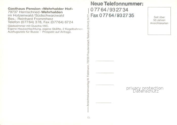 73644280 Wehrhalden Gasthaus Pension Wehrhalder Hof im Hotzenwald Schwarzwald Wintersportplatz postalisch nicht gelaufen Erhaltung siehe scans [FriedD77] KatCode: 11110008337049
