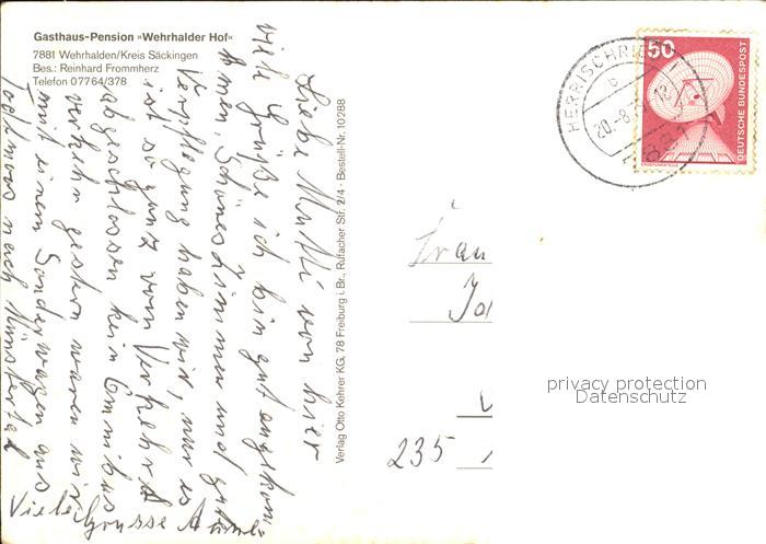 alte Postkarte Wehrhalden Gasthaus Pension Wehrhalder Hof postalisch gelaufen Erhaltung siehe scans