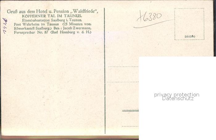 41969971 Wehrheim Hotel Pension Waldfriede Koepperner Tal postalisch nicht gelaufen Erhaltung siehe scans KatCode: 11110006434012