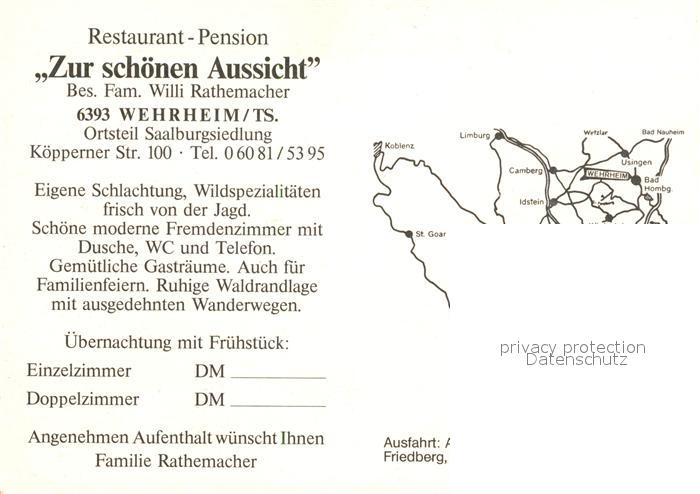 73244088 Wehrheim Restaurant Pension zur schoenen Aussicht postalisch nicht gelaufen Werbekarte (keine Postkarte) Erhaltung siehe scans [LiesaD40] KatCode: 11110006434012