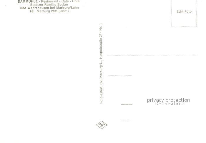 72985772 Wehrshausen Lahn Dammuehle Restaurant Hotel postalisch nicht gelaufen Erhaltung siehe scans [WerneD78] KatCode: 11110006534014