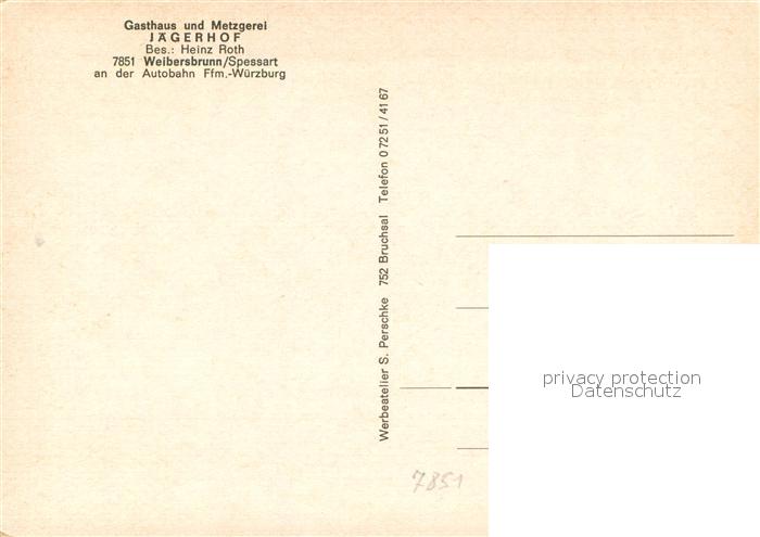 73644279 Weibersbrunn Gasthaus und Metzgerei Jaegerhof postalisch nicht gelaufen Erhaltung siehe scans [FriedD77] KatCode: 11110009671157