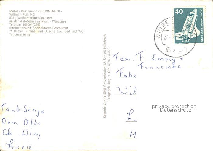 72606527 alte Postkarte Weibersbrunn Motel Brunnenhof postalisch gelaufen Erhaltung siehe scans [NatalD47] KatCode: 11110009671157