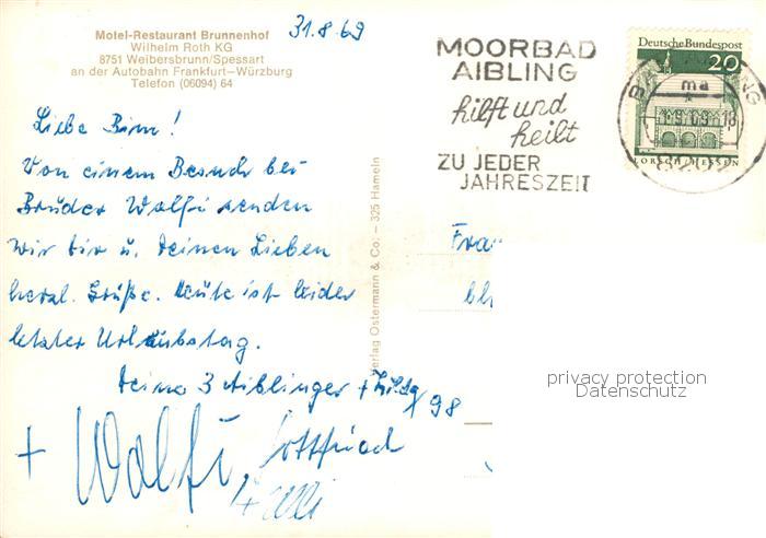 73859260 alte Postkarte Weibersbrunn Motel Restaurant Brunnenhof postalisch gelaufen Erhaltung siehe scans [WerneD78] KatCode: 11110009671157