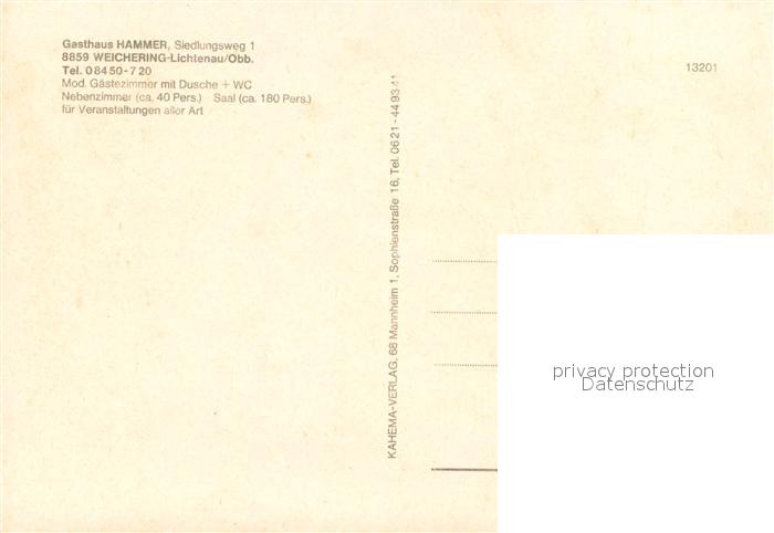 73716924 Weichering Gasthaus Hammer Gastraum Fremdenzimmer Naherholungsgebiet postalisch nicht gelaufen Erhaltung siehe scans [FriedD77] KatCode: 11110009185168