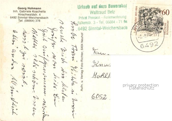 73214548 alte Postkarte Weichersbach Panorama Kirche Sparmarkt Ladengeschaeft postalisch gelaufen Erhaltung siehe scans [FriedD77] KatCode: 11110006435027