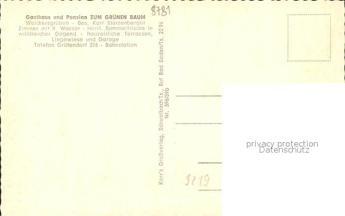 31702446 Weickersgrueben Main Gasthaus-Pension Zum Gruenen Baum postalisch nicht gelaufen Erhaltung siehe scans KatCode: 11110009677133