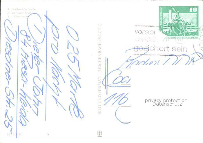72458119 alte Postkarte Weida Riesa Greifswalder Strasse Villerupter Strasse Oberschule postalisch gelaufen Erhaltung siehe scans KatCode: 11110014285250