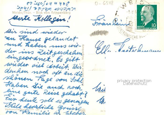 73099850 alte Postkarte Weida Thueringen Panorama postalisch gelaufen Erhaltung siehe scans [KathaD81] KatCode: 11110016076079