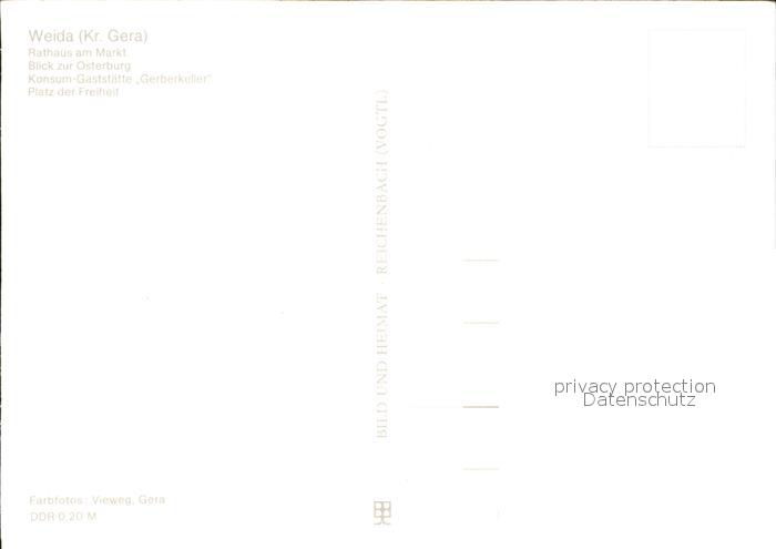 72528523 Weida Thueringen Rathaus am Markt Osterburg Konsum Gaststaette Gerberkeller Platz der Freiheit postalisch nicht gelaufen Erhaltung siehe scans KatCode: 11110016076079