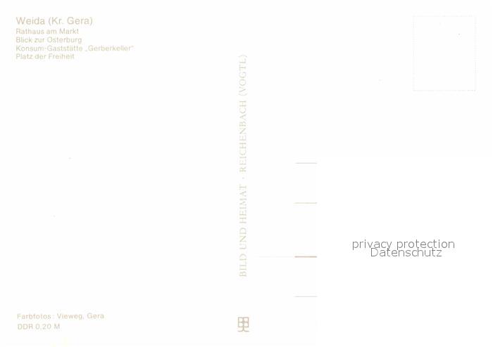 72829160 Weida Thueringen Rathaus Markt Osterburg Konsumgaststaette Gerberkeller Platz der Freiheit postalisch nicht gelaufen Erhaltung siehe scans [FriedD77] KatCode: 11110016076079