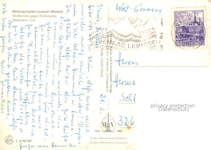 73122246 alte Postkarte Weidach Leutasch Winterpanorama Dreitorspitze postalisch gelaufen Erhaltung siehe scans [KathaD81] KatCode: 11390332070326