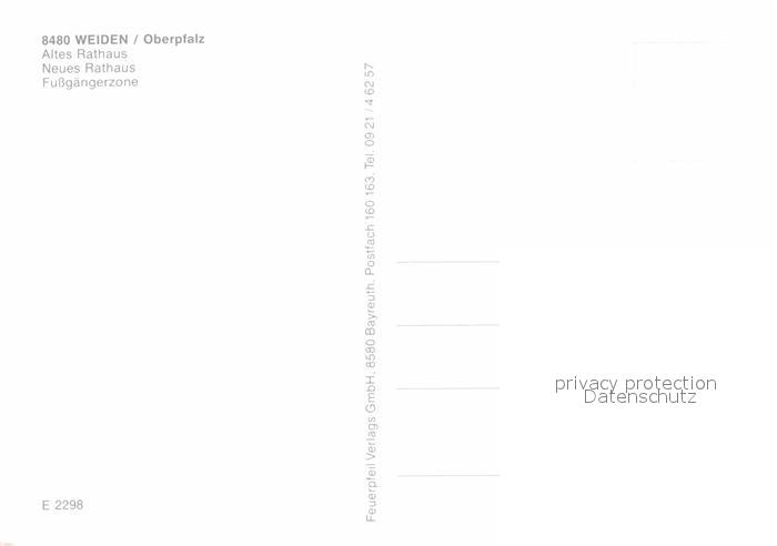 72714445 Weiden Oberpfalz altes und neues Rathaus Fussgaengerzone postalisch nicht gelaufen Erhaltung siehe scans [LiesaD40] KatCode: 11110009363000