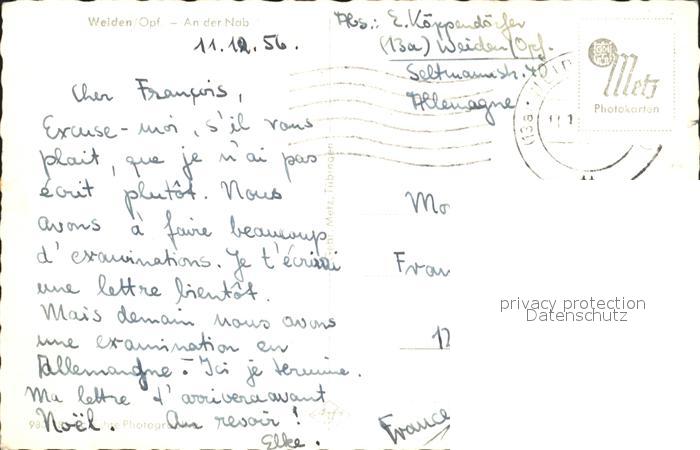 72312842 alte Postkarte Weiden Oberpfalz Ander Nab postalisch gelaufen Erhaltung siehe scans KatCode: 11110009363000