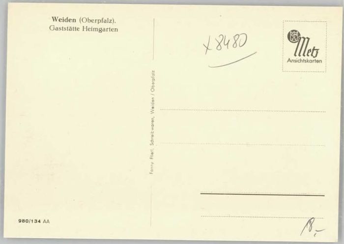 40257040 Weiden Oberpfalz Gaststätte Heimgarten KatCode 11110009363000