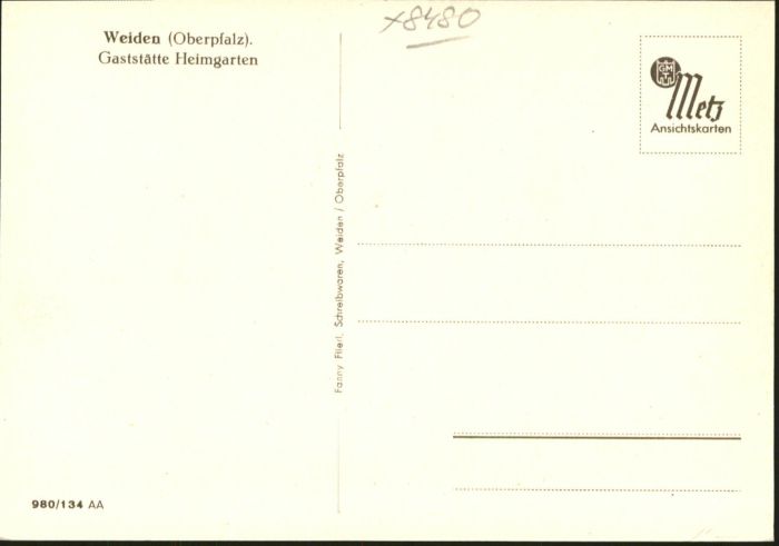 40774581 Weiden Oberpfalz Gaststätte Heimgarten KatCode 11110009363000