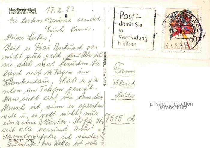 74049351 alte Postkarte Weiden Oberpfalz Motive Innenstadt Max-Reger-Stadt Parkanlagen postalisch gelaufen Erhaltung siehe scans [FriedD77] KatCode: 11110009363000