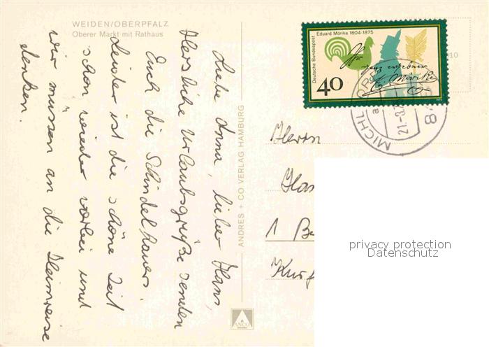 72688064 alte Postkarte Weiden Oberpfalz Oberer Markt mit Rathaus postalisch gelaufen Erhaltung siehe scans [FriedD77] KatCode: 11110009363000
