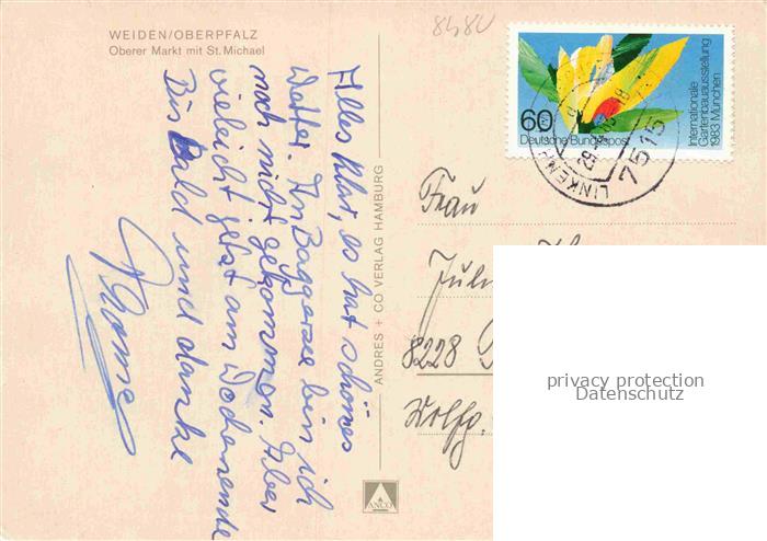 74049352 alte Postkarte Weiden Oberpfalz Oberer Markt mit St. Michael Kirche postalisch gelaufen Erhaltung siehe scans [FriedD77] KatCode: 11110009363000