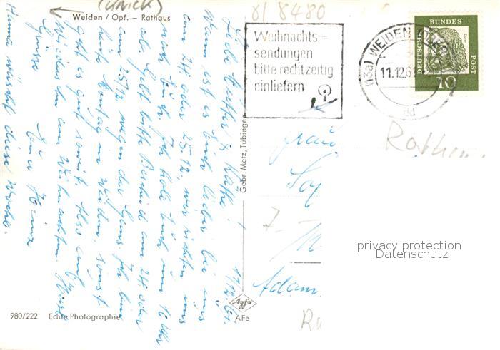 73866464 alte Postkarte Weiden Oberpfalz Rathaus postalisch gelaufen Erhaltung siehe scans [WerneD78] KatCode: 11110009363000