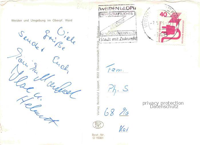 74049355 alte Postkarte Weiden Oberpfalz und Umgebung Leuchtenberg Flossenbuerg Parkstein Stadtplatz Weiden postalisch gelaufen Erhaltung siehe scans [FriedD77] KatCode: 11110009363000