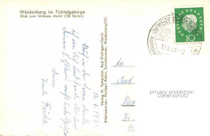 72885094 alte Postkarte Weidenberg Blick zum Unteren Markt Treppe postalisch gelaufen Erhaltung siehe scans [FriedD77] KatCode: 11110009472199