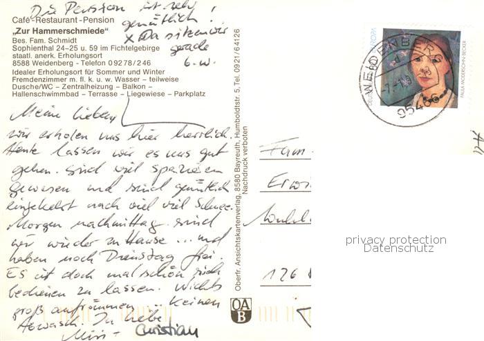 73859023 Weidenberg Cafe Pension Restaurant Zur Hammerschmiede Gastraum Garten postalisch nicht gelaufen Erhaltung siehe scans [WerneD78] KatCode: 11110009472199