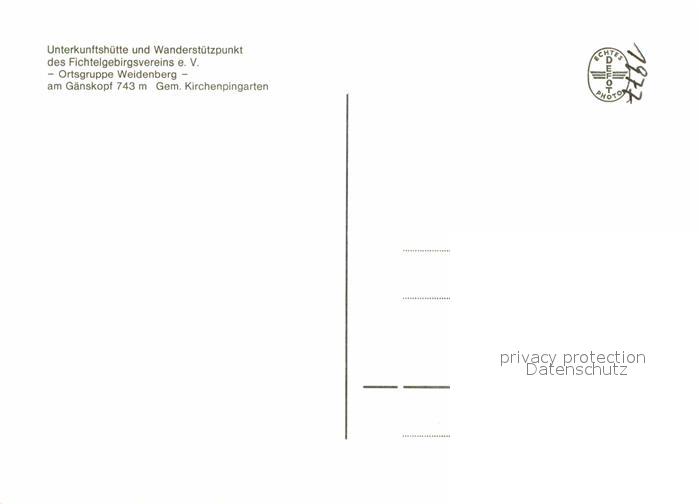 72780114 Weidenberg Gaensekopfhuette postalisch nicht gelaufen Erhaltung siehe scans [LiesaD40] KatCode: 11110009472199